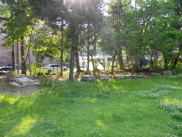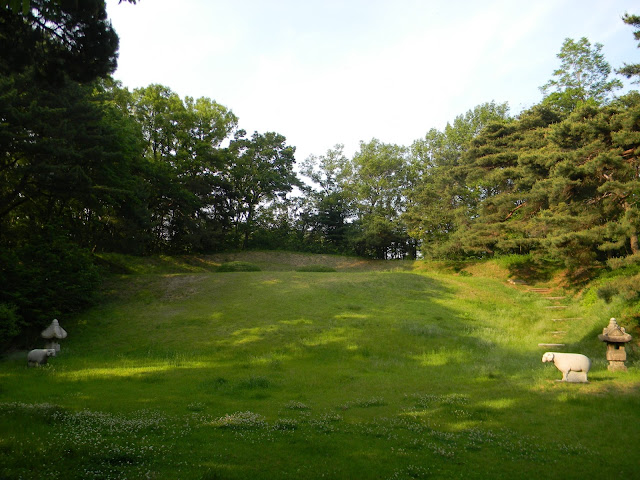 25. 묘역 밑에 모여있는 상석 등의 석물, 그리고 대자연이 간송을 흠모하며 깔아놓은 자연산 푸른 융단과 들꽃들