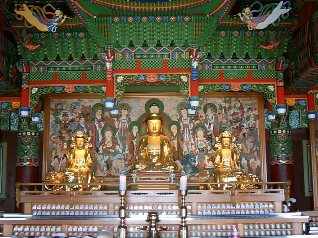 경내로 들어서려면 선정루의 아랫도리를 지나야 된다. 이 건물은 가파른 언덕에 지은 것으로 자연히 3 층을 이루고 있는데, 아래층에는 부처의 경호원 인 사천왕상(四天王像)이 있으며, 건물 위쪽은 부처의 중생구제를 향한 메세지가 담긴 사물(四 物, 범종, 운판, 법고, 목어)의 보금자리로 종 각의 역할을 한다. 이 건물은 1988년에 지어졌 으며, 그 이전에는 계단만 덩그러니 있었다. |