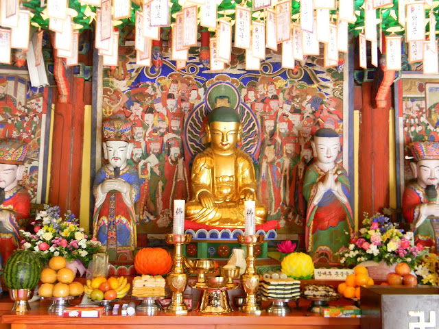 일음루를 지나면 주차장이 나온다. 수레를 끌고 온 이들은 여기서 수레를 접어야 되는데, 주차 공간이 넉넉치 못해 바퀴를 동동 굴리는 수레들도 적지 않았다. 어떤 수레 주인은 주차장 관리 요원과 자리를 두고 말싸움을 벌여 석가탄신일의 경건한 분위기를 해치기도 한다. 봉국사가 교 통이 불편한 시골에 있다면 이해라도 하지만 교통편도 괜찮은 서울 한복판에 자리해 있는데, 잠 깐 편하자고 굳이 수레를 끌고와 불편과 혼잡에 기름을 껴얹어야 되는지 모르겠다. 이런 날은 그저 대중교통이 정신 건강에 이롭다.