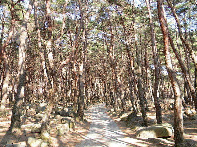 북지장사 길 중간에는 짙게 우거진 소나무 숲길이 있다. 소나무들이 얼마나 강인한 협동심을