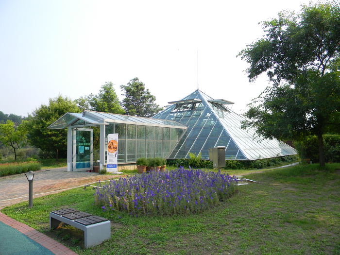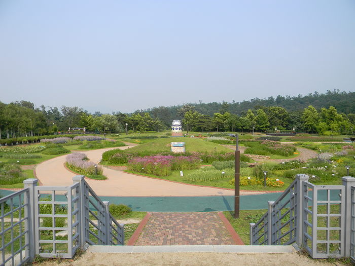 32. 관천대(월대)에서 바라본 허브천문공원 남쪽 (약초원, 온실)