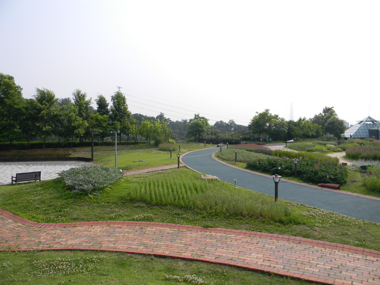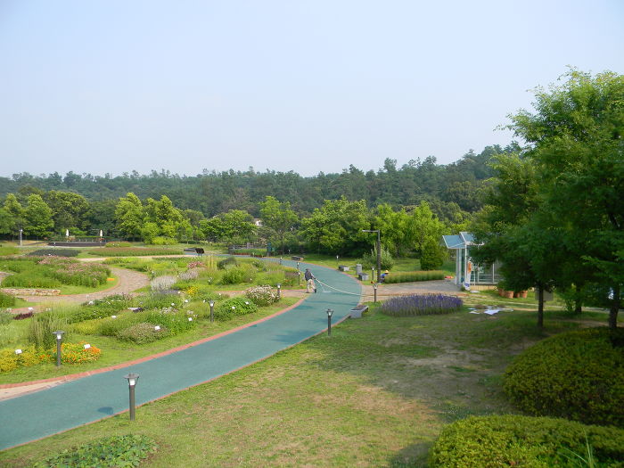 20. 색의정원과 공원을 동그랗게 둘러싼 남색 피부의 산책로