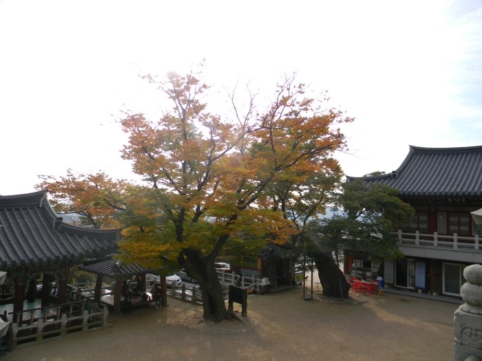 2. 붉게 잘익은 경내 동쪽 느티나무 (밑에서 바라본 모습)