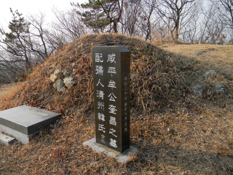 작은 봉분과 검은 피부의 묘표(묘비), 그리고 상석으로 이루어진 단출한 모습이다.