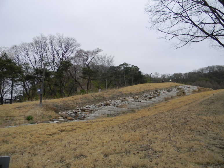 땅속에 묻힌 성곽 아랫도리 흔적 앞에 탐방로를 내었다. 이 탐방로는 방공호와 유적전시관 동쪽 성곽