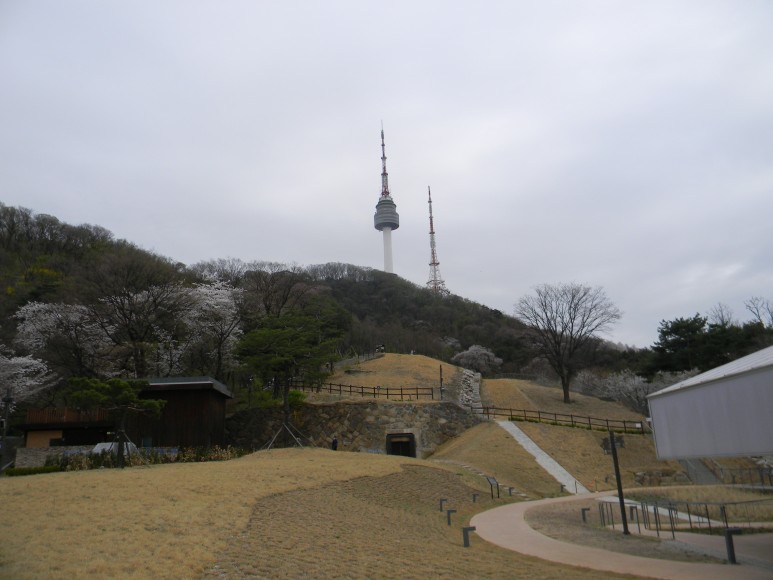 6. 한양도성 유적전시관 서쪽에서 바라본 남산서울타워와 방공호