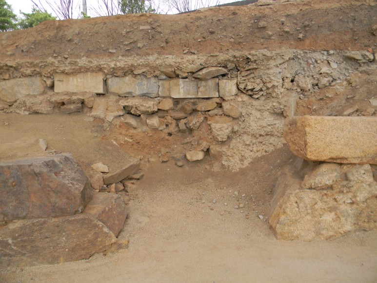 2014년 발굴조사로 다시금 햇살을 보게 된 성곽의 아랫도리 흔적들, 그 흔적을 그대로 둔 채, 크게