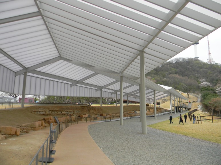 각을 높게 씌우고 유적전시관으로 삼았다.