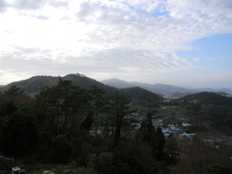 완도읍내 서쪽에 자리한 서망봉과 초개산이 첩첩한 산주름을 보인다.