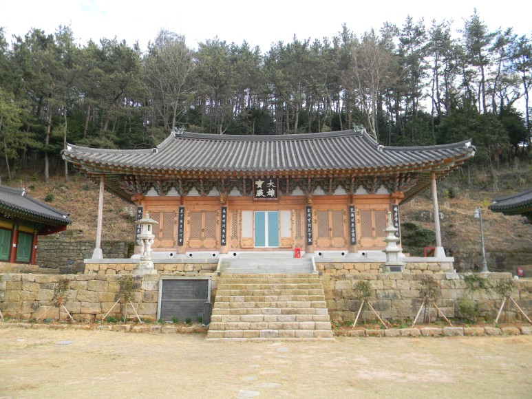 절이 남망봉 북쪽 자락에 있고, 대웅보전과 약사전 등이 북쪽을 바라보고 있는데, 여기서는 완도읍내