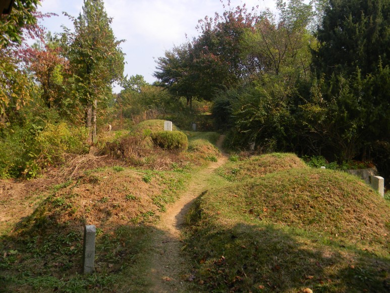 분 앞을 지나기도 하고, 봉분 뒷쪽을 지나기도 하며, 봉분 옆구리도 지나는 등, 무덤 사이사이를 이리