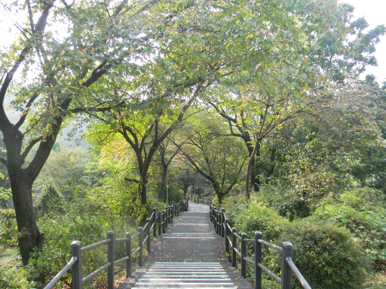 3. 망우역사문화공원 사색의길로 인도하는 나무데크 계단길 (윗쪽 사색의길 방향)
