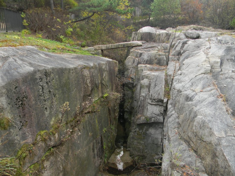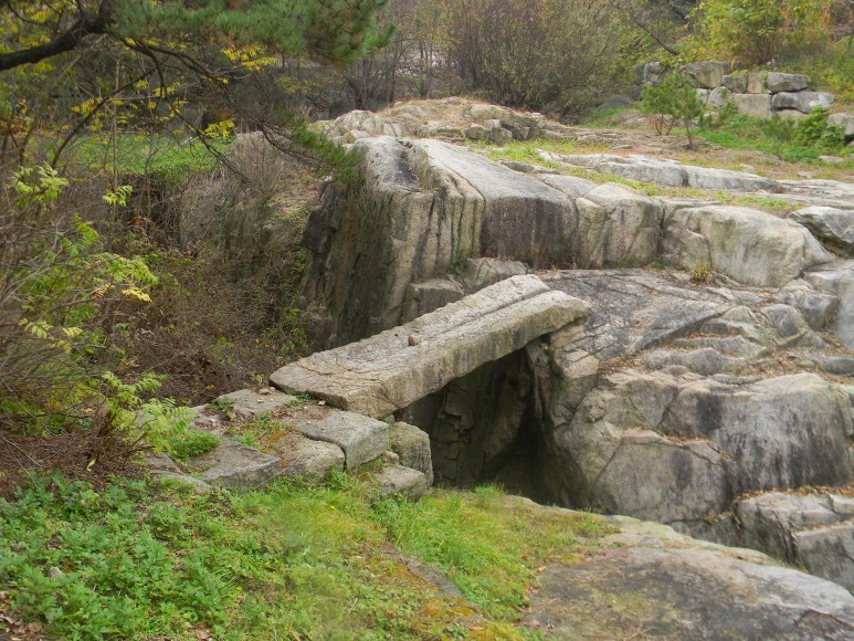 수성동계곡의 유일한 늙은 문화유산이자 높은 벼랑 위에 걸터 앉은 통돌 스타일의 돌다리, 기린교