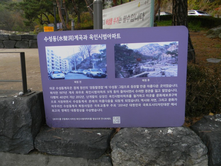 한때 수성동계곡을 깔고 앉았던 옥인시범아파트, 그들은 모두 사라지고 계곡은 상당수 복원되었다.