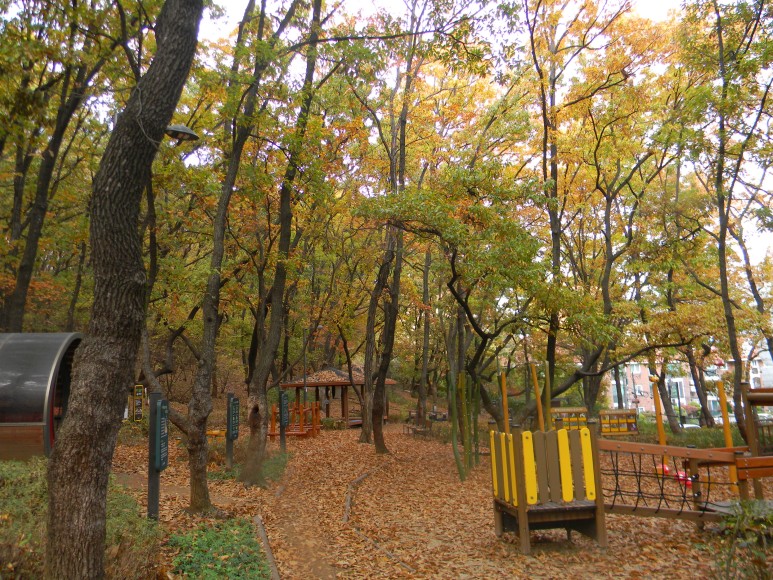 누렇게 뜬 낙엽들이 가득 깔려 늦가을 감성을 크게 돋군다. 이곳 숲속놀이터는 어린이와 가족 단위 나